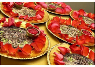 The spread of Islam to what is now Pakistan, starting in the Eighth Century, has given a basic character to the food of Pakistan. The Quranic injunctions against eating pork or drinking alcoholic beverages has channeled tastes and appetites in other directions. Lamb, beef, chicken and fish are basic foods, although their consumption by persons of low income is modest and often ceremonial. Some of the Muslim feasts involve special dishes. Eid-ul-Adha, which commemorates the Prophet Ibrahim's readiness to obey God even to the point of being willing to sacrifice his son, is observed by the sacrifice of a goat, a lamb, or a cow from which special dishes are made. On Eid-ul-Fitr, which marks the end of RAMZAN, the month of fasting in the Islamic Calender, the serving of a special dessert of vermicelli cooked in milk is a must. Almond and pistachios are added as decorations as is the silver foil. The latter is so thin that it will disintegrate unless it is immediately transferred from the protective layers of paper onto the dish.